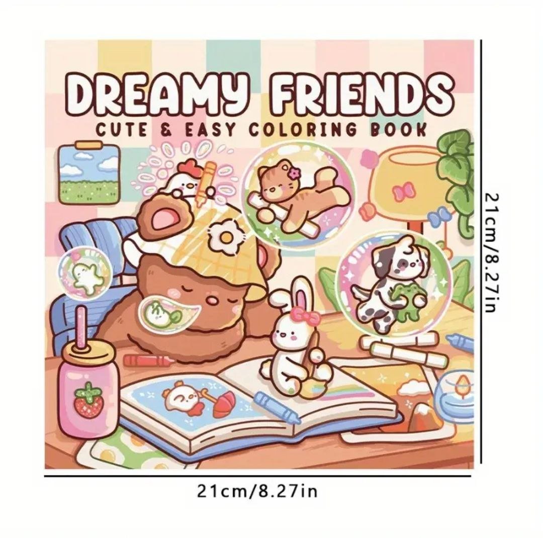 كتاب Dreamy Friends يأخذك إلى لحظات حالمة مع مجموعة من الحيوانات الظريفة في مشاهد مليئة بالمحبة، المرح، والسكينة. كل صفحة ستشعرك وكأنك داخل حلم جميل تقضيه مع أصدقاءك الصغار.