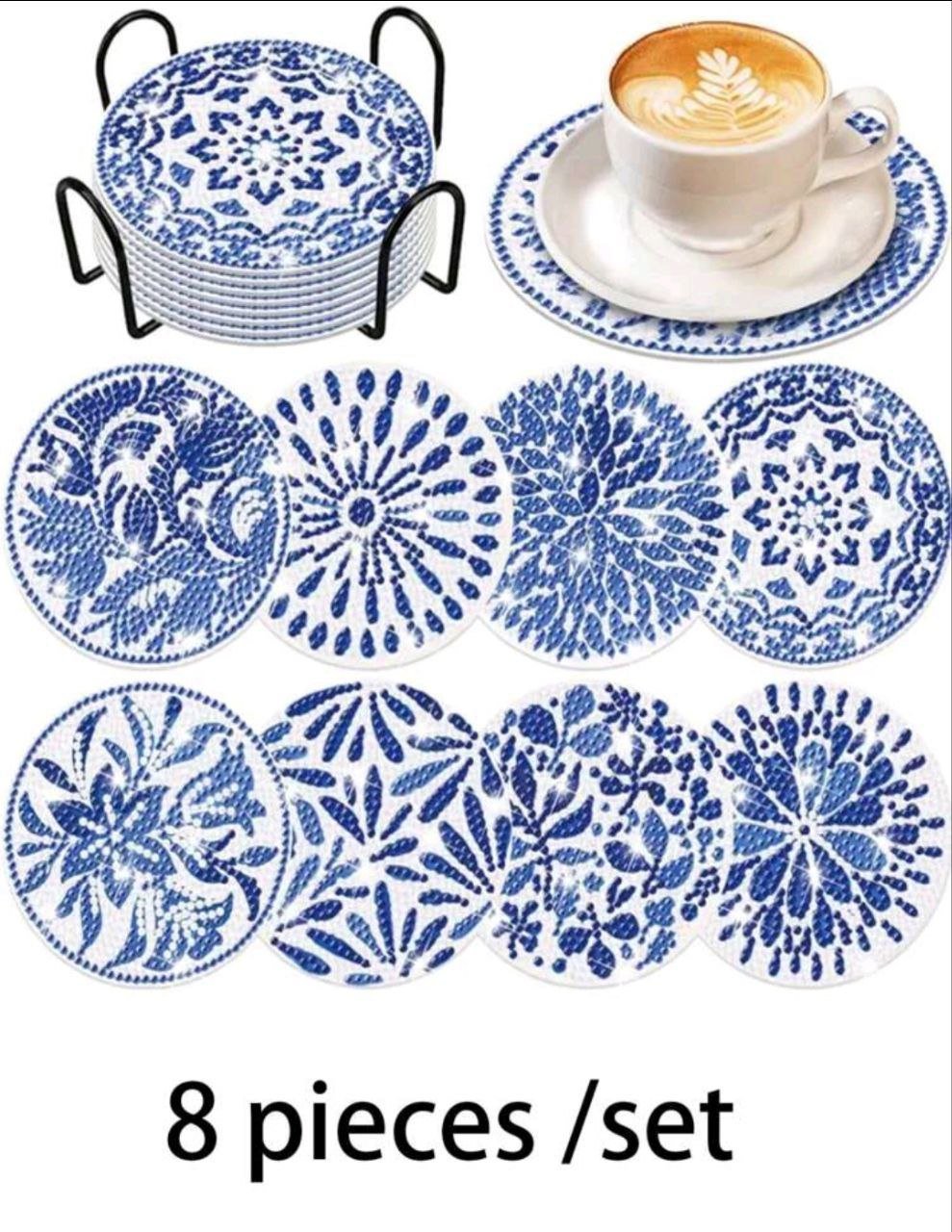 مجموعة قواعد للاكواب 8 قطع مع الحامل