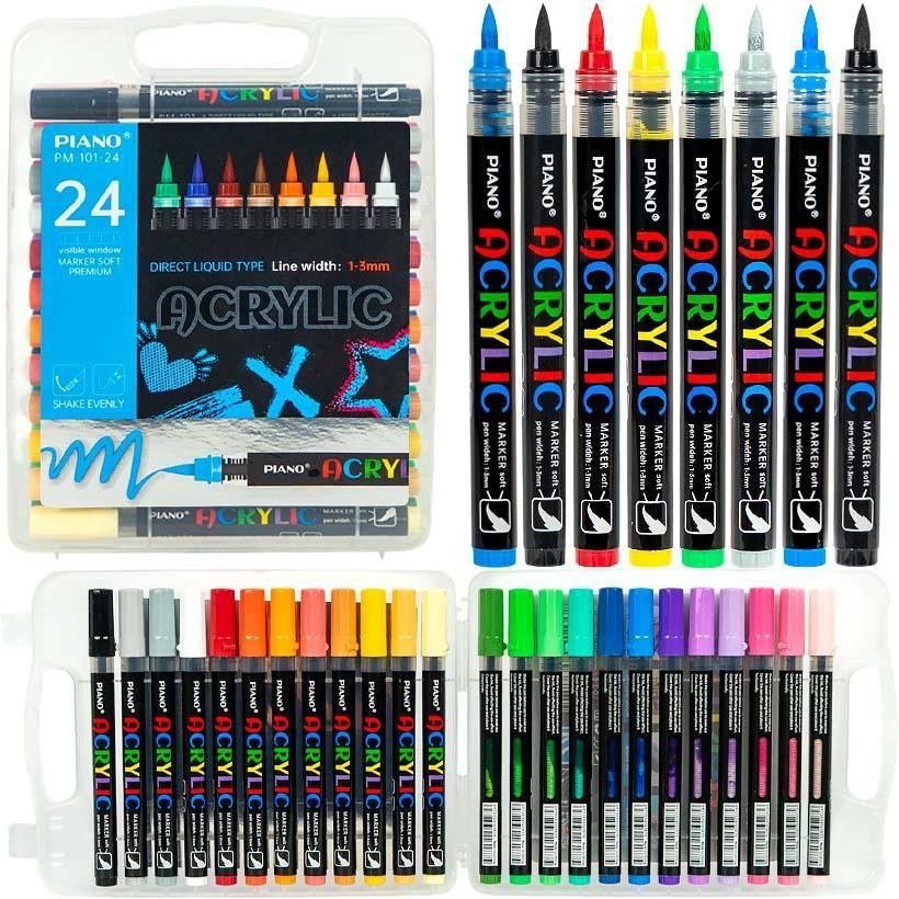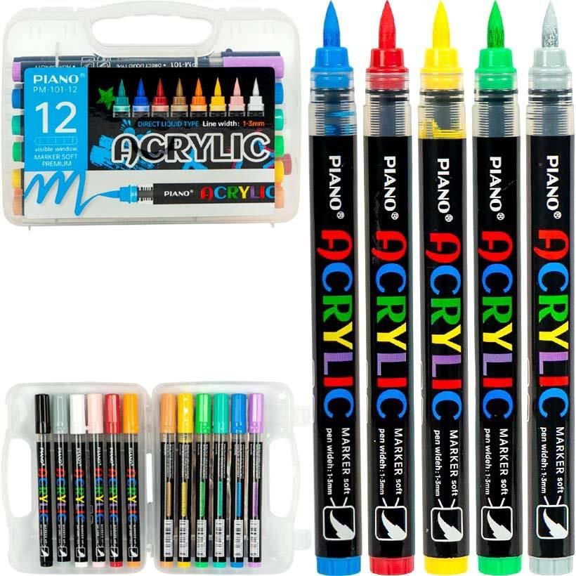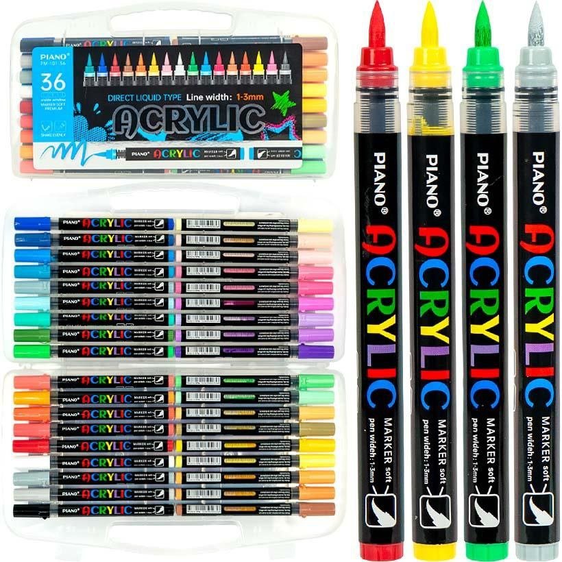 تتضمن – 12 – 24 – 36 لونًا غنيًا وكثيفًا، مثالية للزجاج والخشب والقماش والصخور وغيرها.