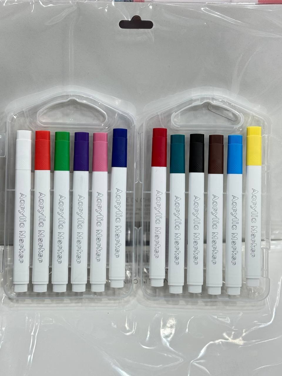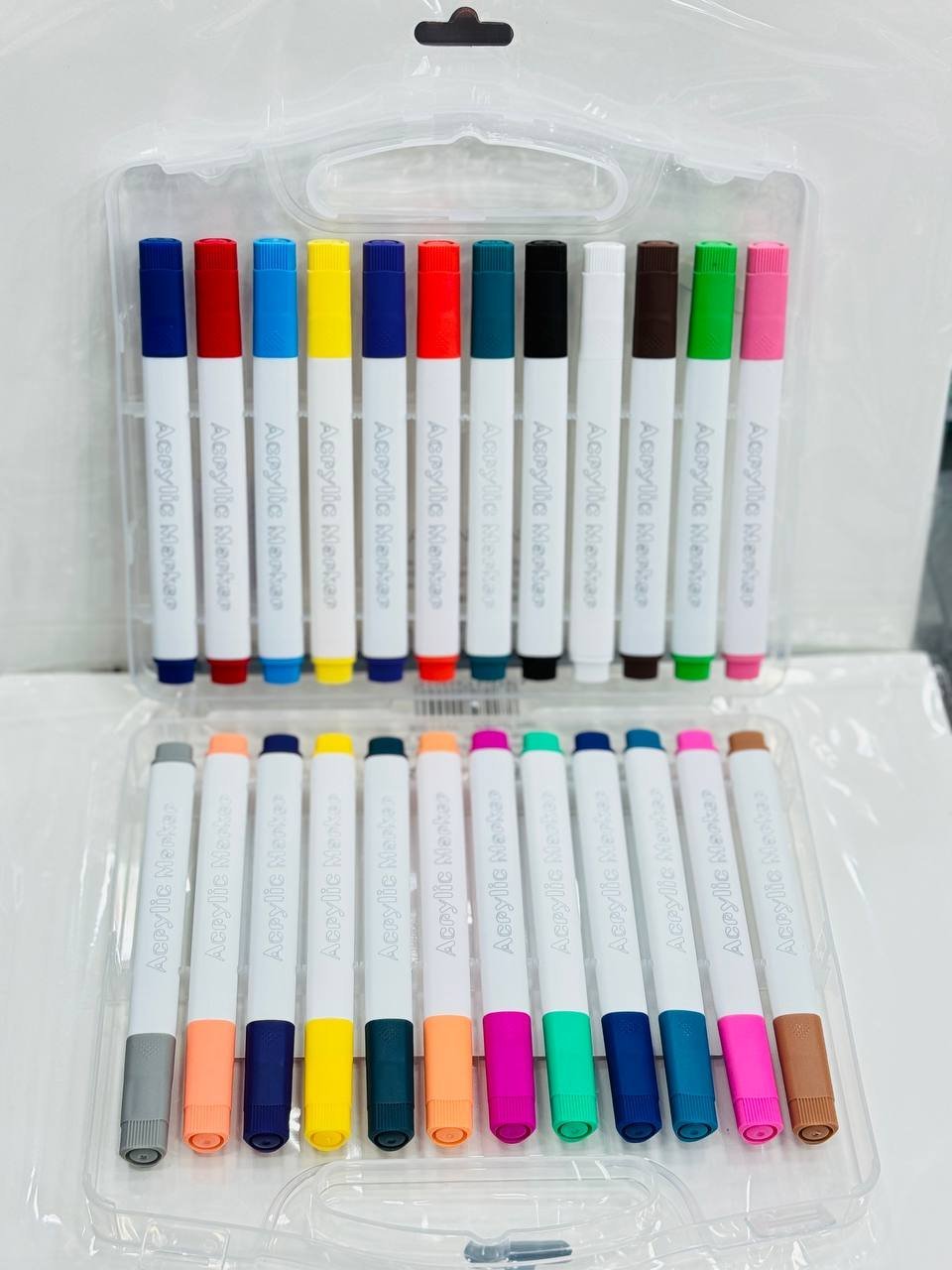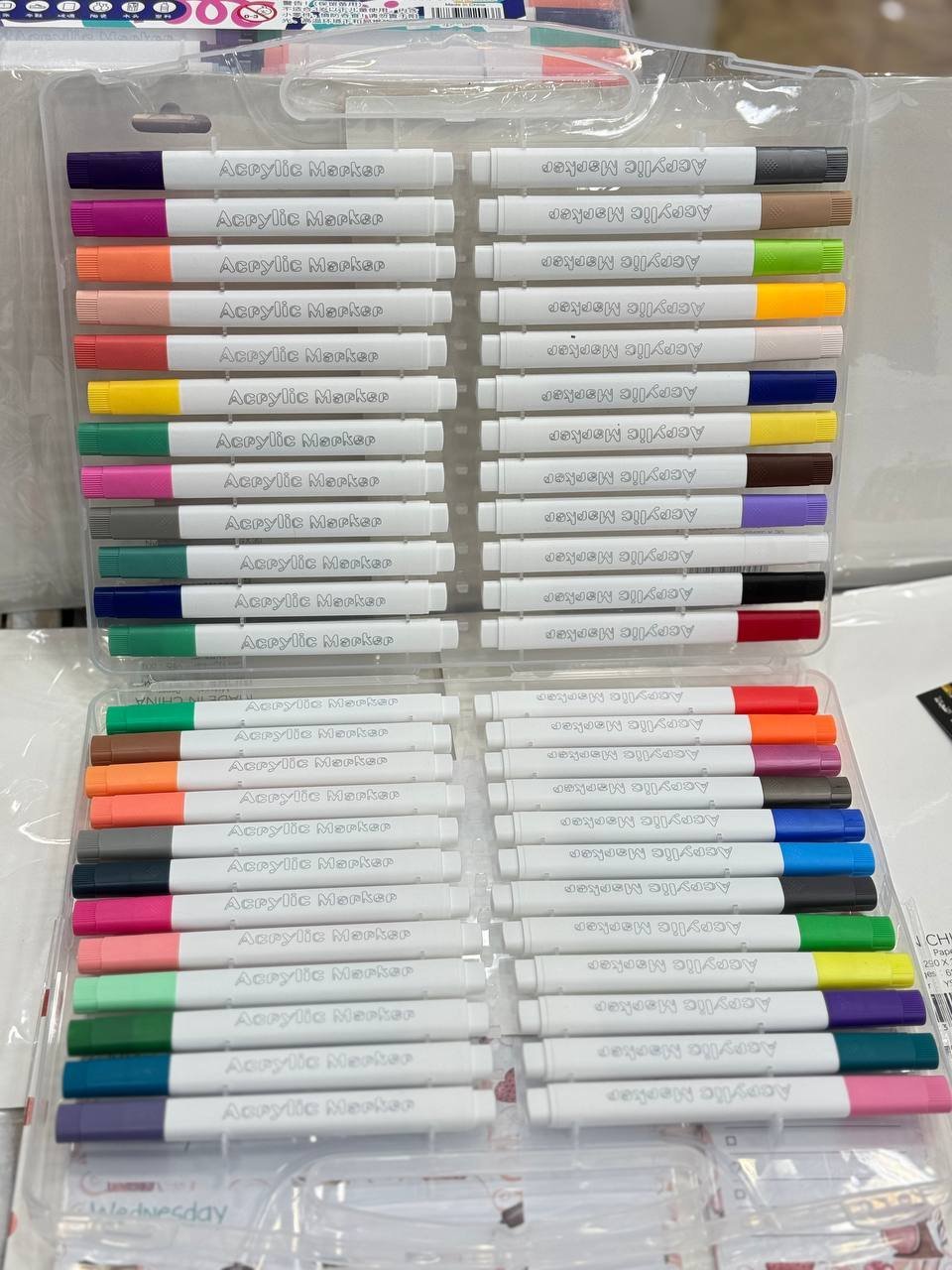 تتضمن – 12 – 24 – 36 – 48 لونًا غنيًا وكثيفًا، مثالية للزجاج والخشب والقماش والصخور وغيرها.
