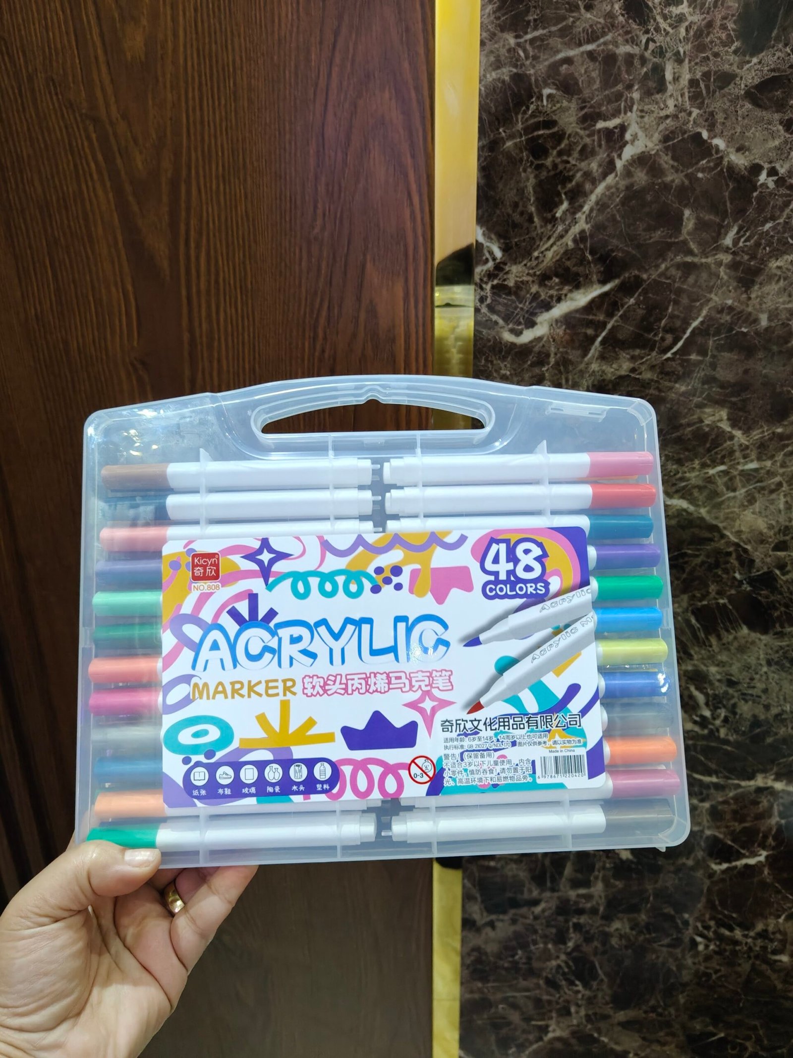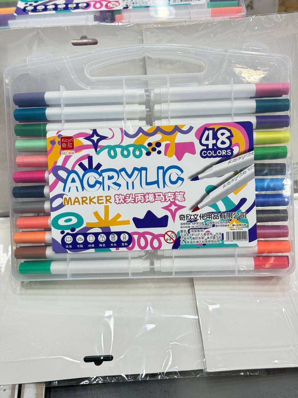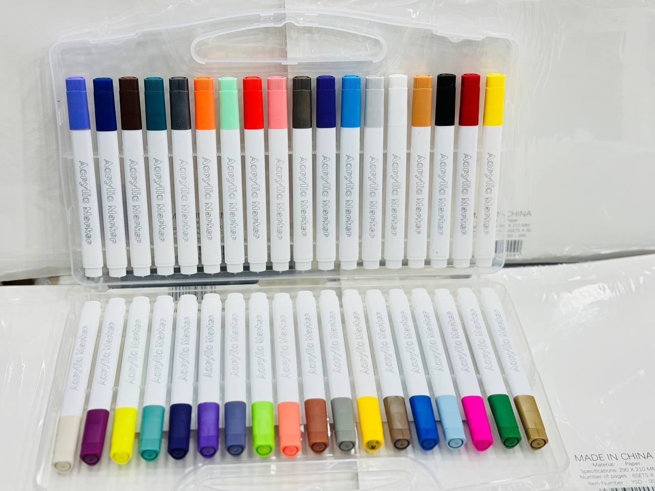 تتضمن – 12 – 24 – 36 – 48 لونًا غنيًا وكثيفًا، مثالية للزجاج والخشب والقماش والصخور وغيرها.